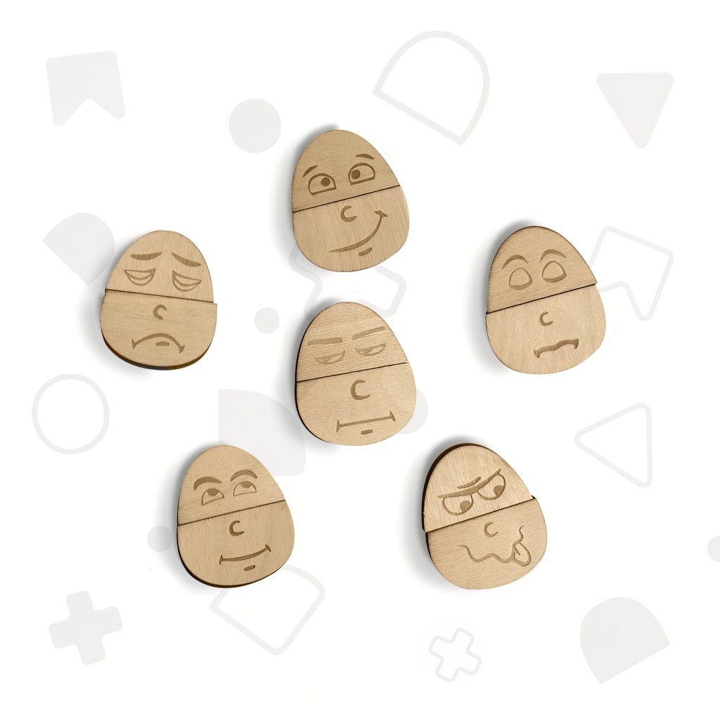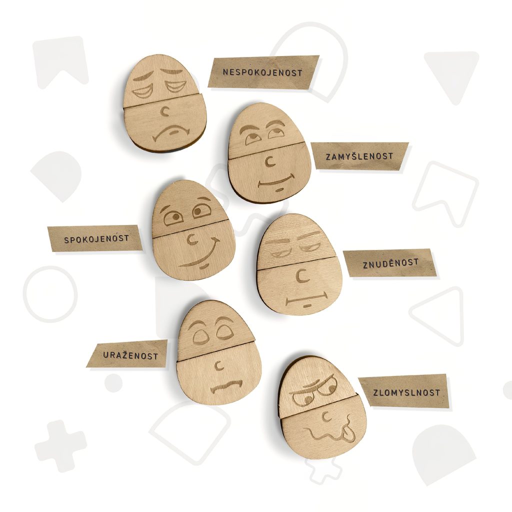 Dřevěný set emocí je skvělým nástrojem pro rozvoj emocionální inteligence a komunikace.