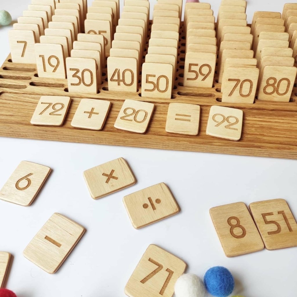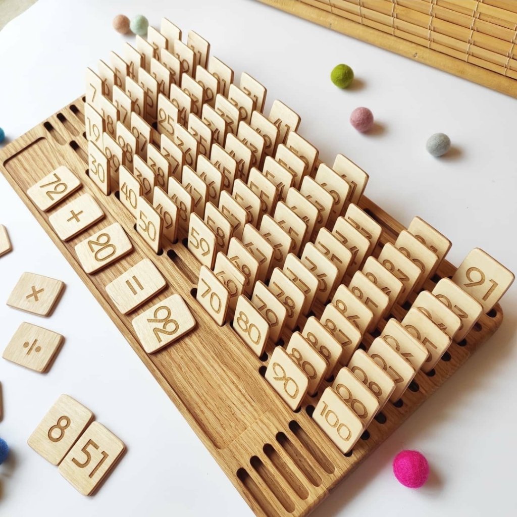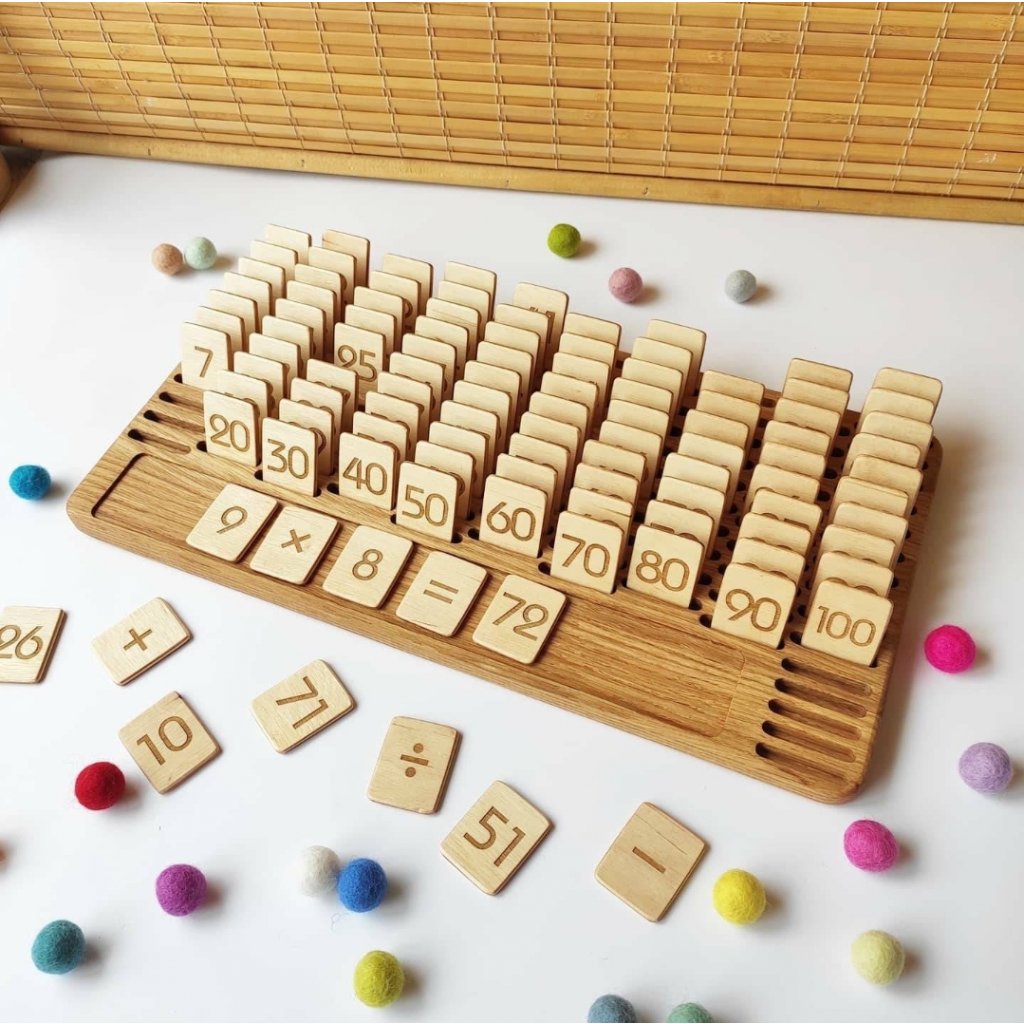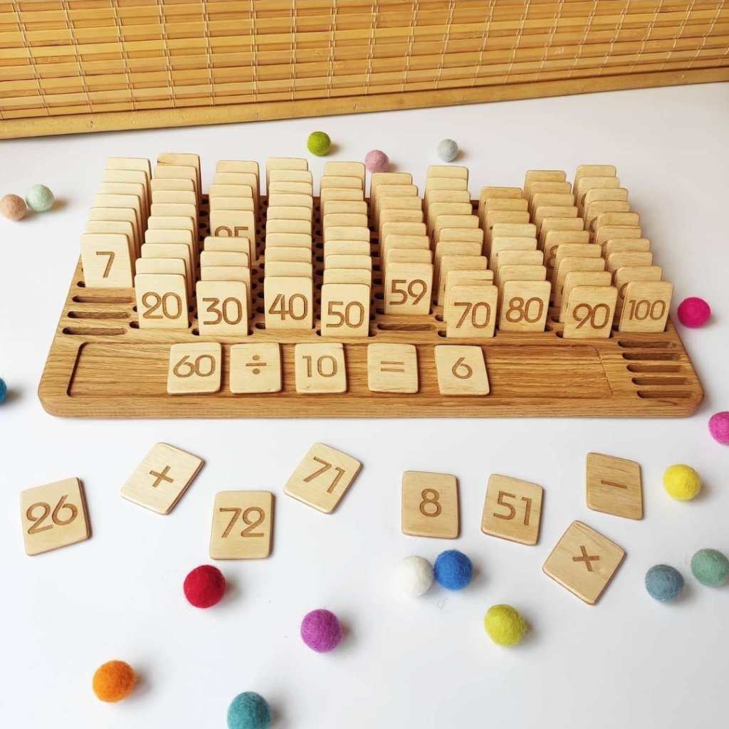Za pomoci jednotlivých kartiček s čísly 1-100 můžete s Vaší ratolestí počítat jednoduché i složitější příklady za pomoci používání symbolů + - x : =.