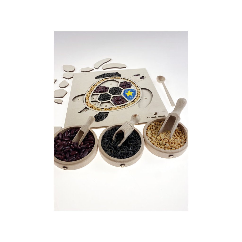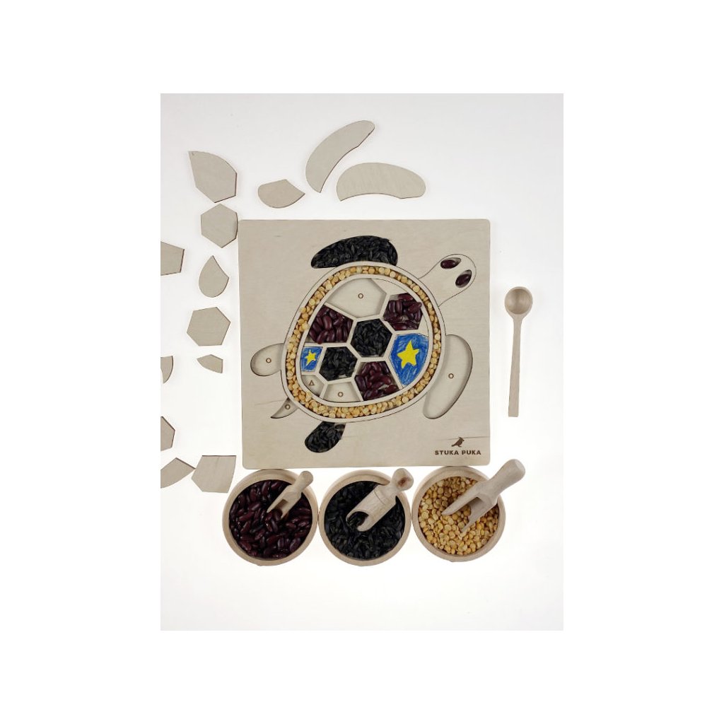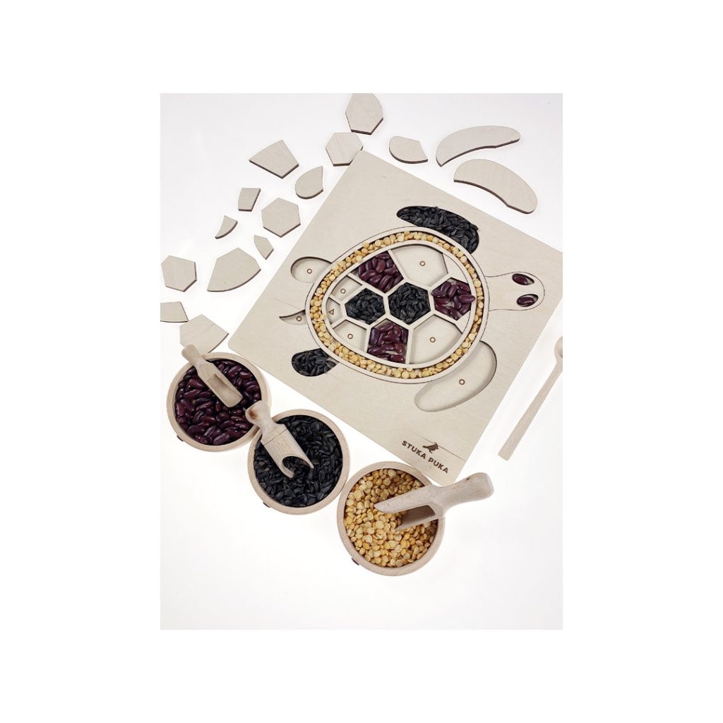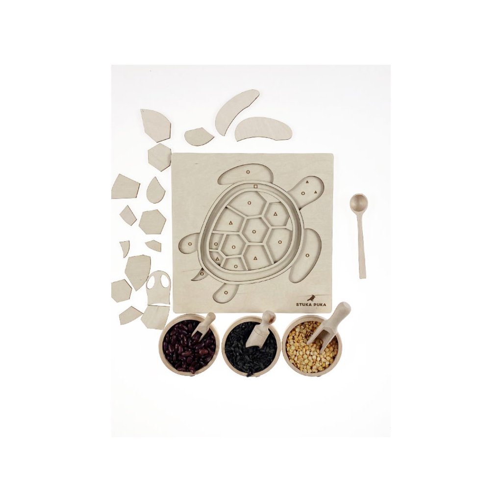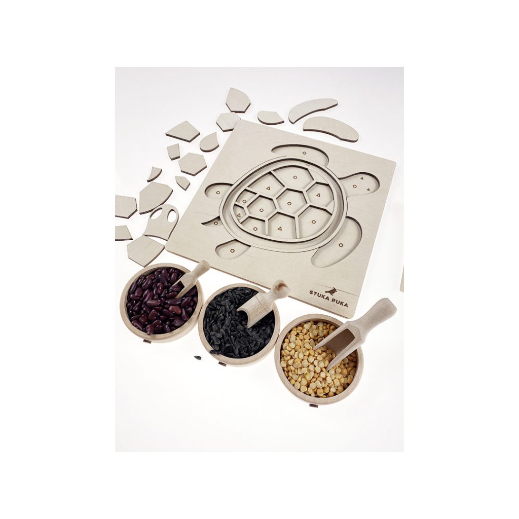 MONTESSORI PŘESYPÁVÁNÍ - EDUKATIVNÍ DŘEVĚNÉ PUZZLE - ŽELVA