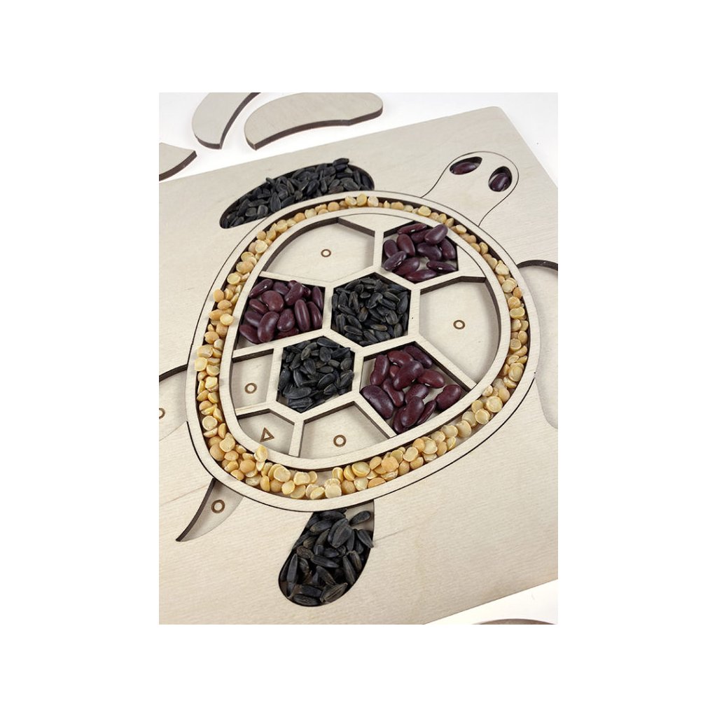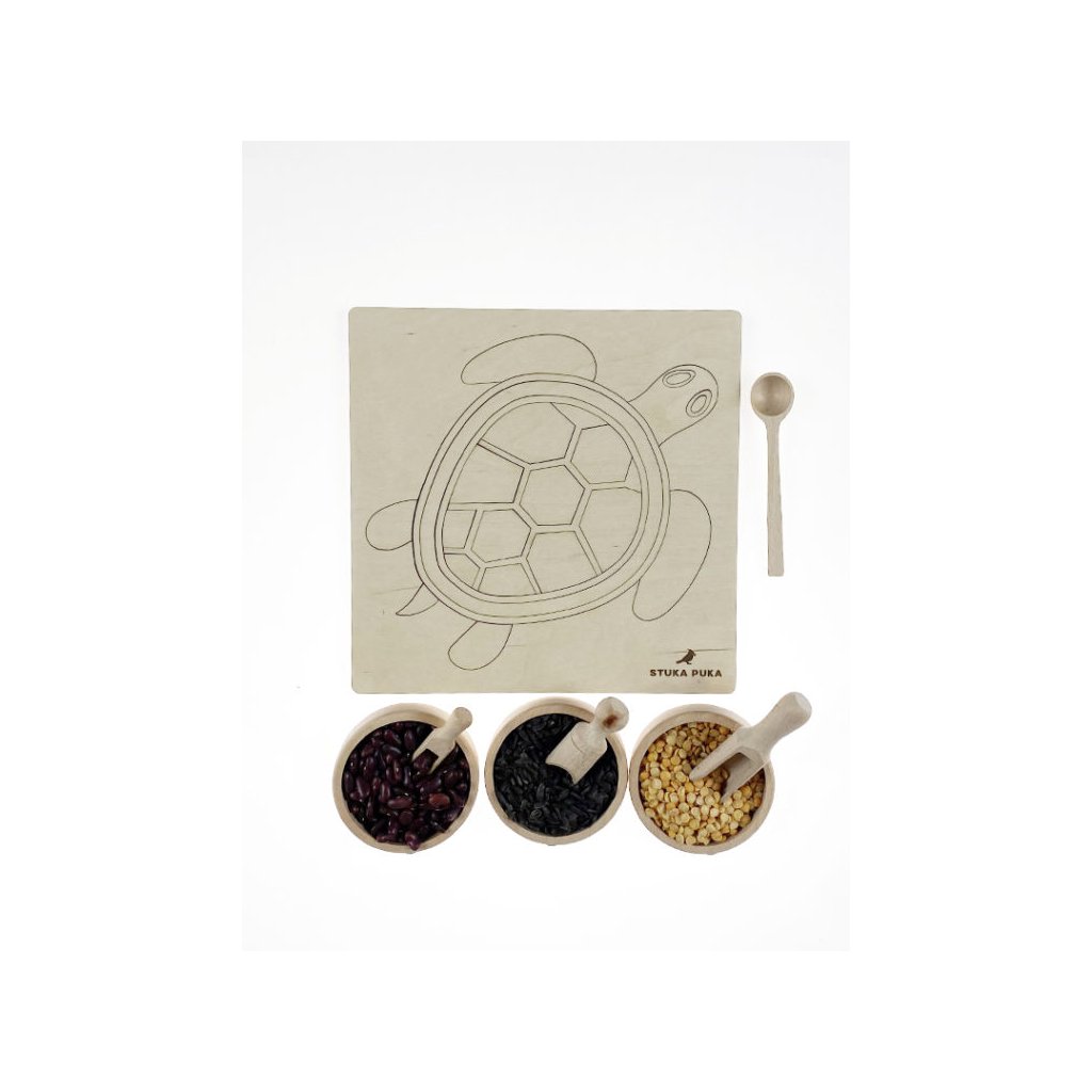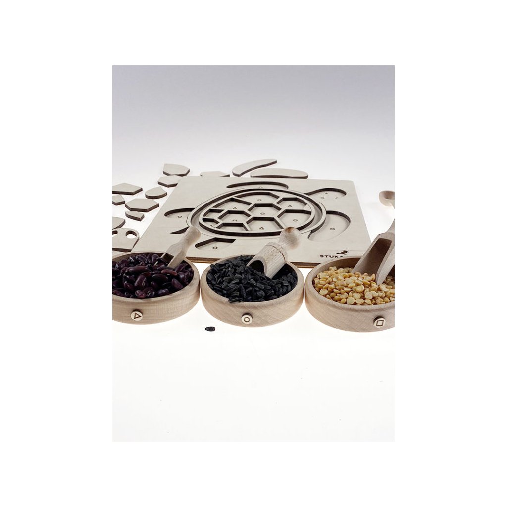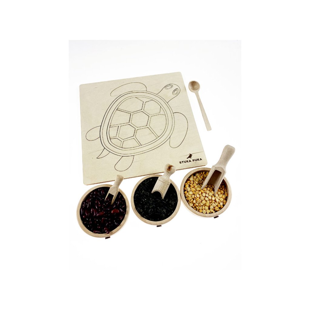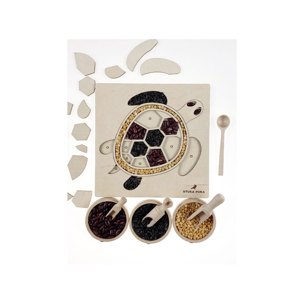 MONTESSORI PŘESYPÁVÁNÍ - EDUKATIVNÍ DŘEVĚNÉ PUZZLE - ŽELVA