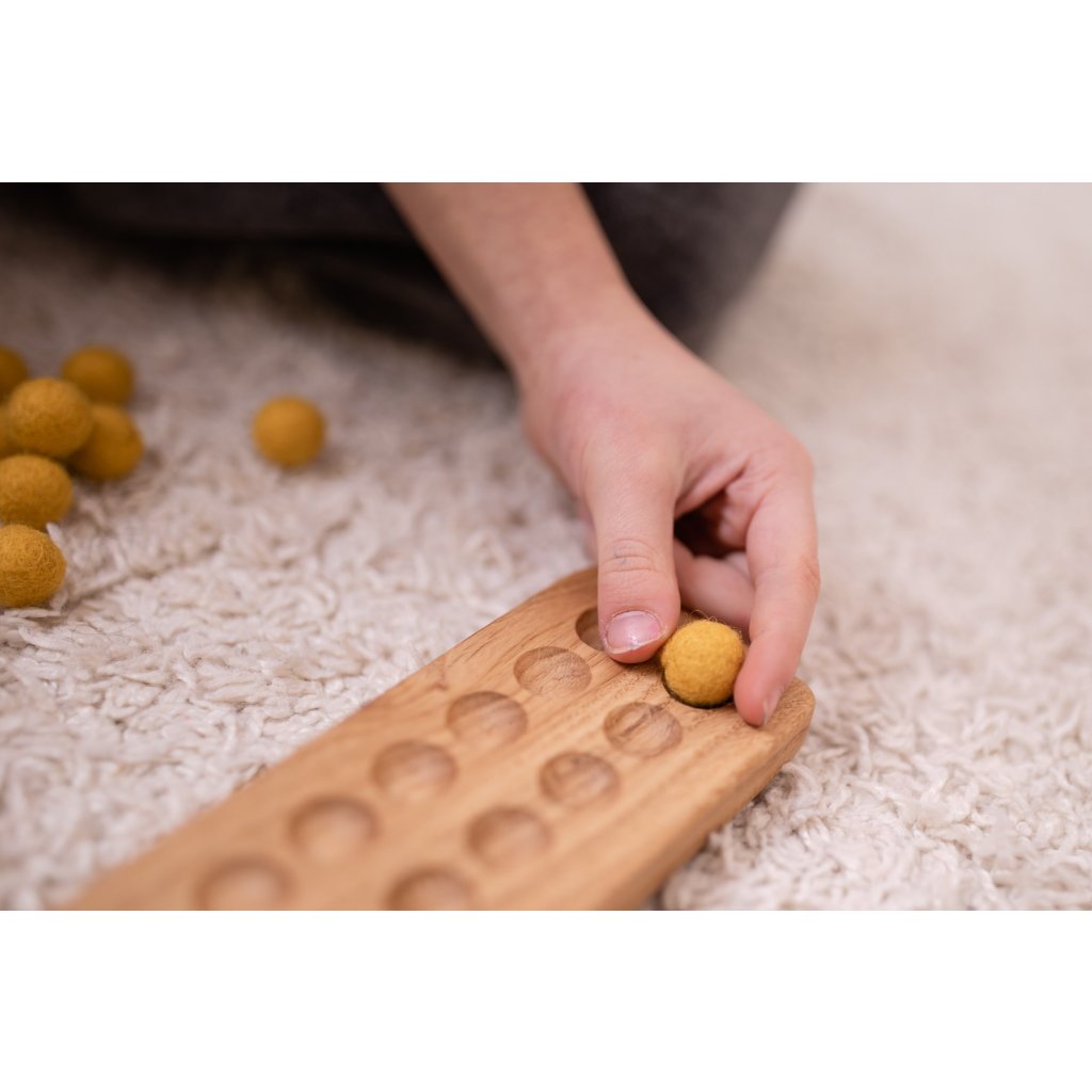 Dřevěná deska s 20 plstěnými kuličkami