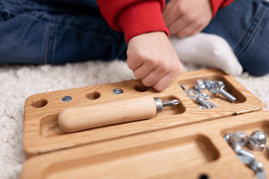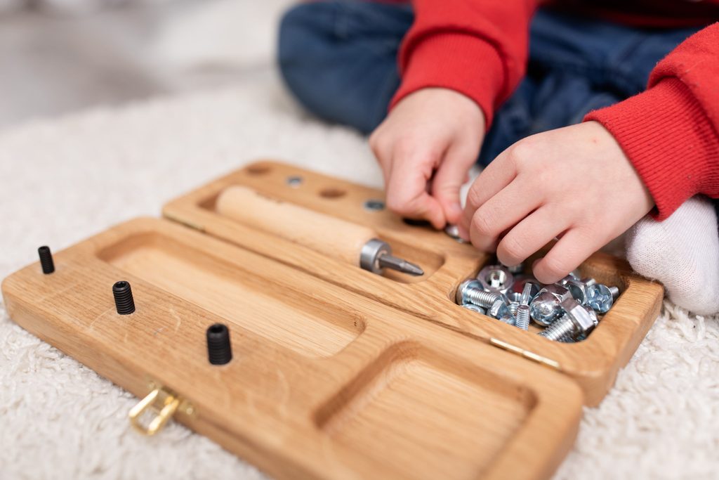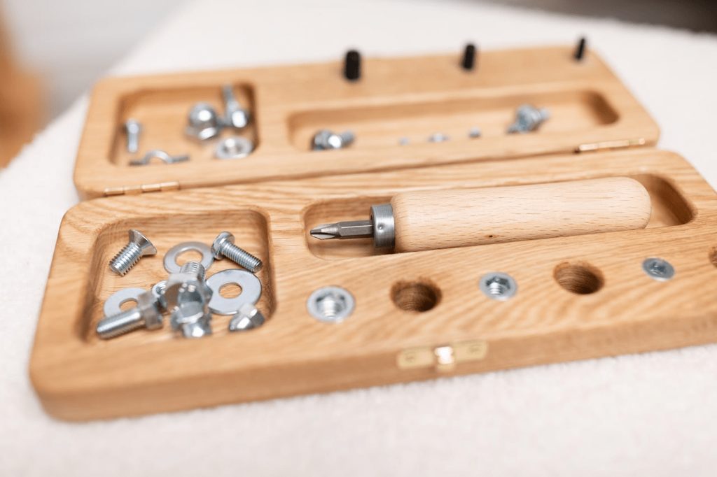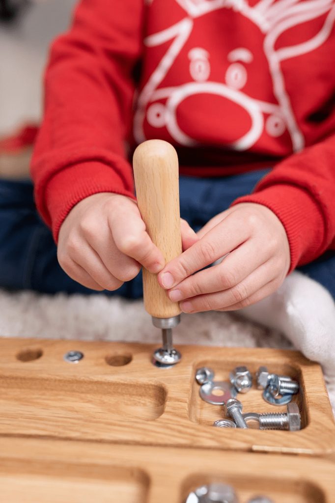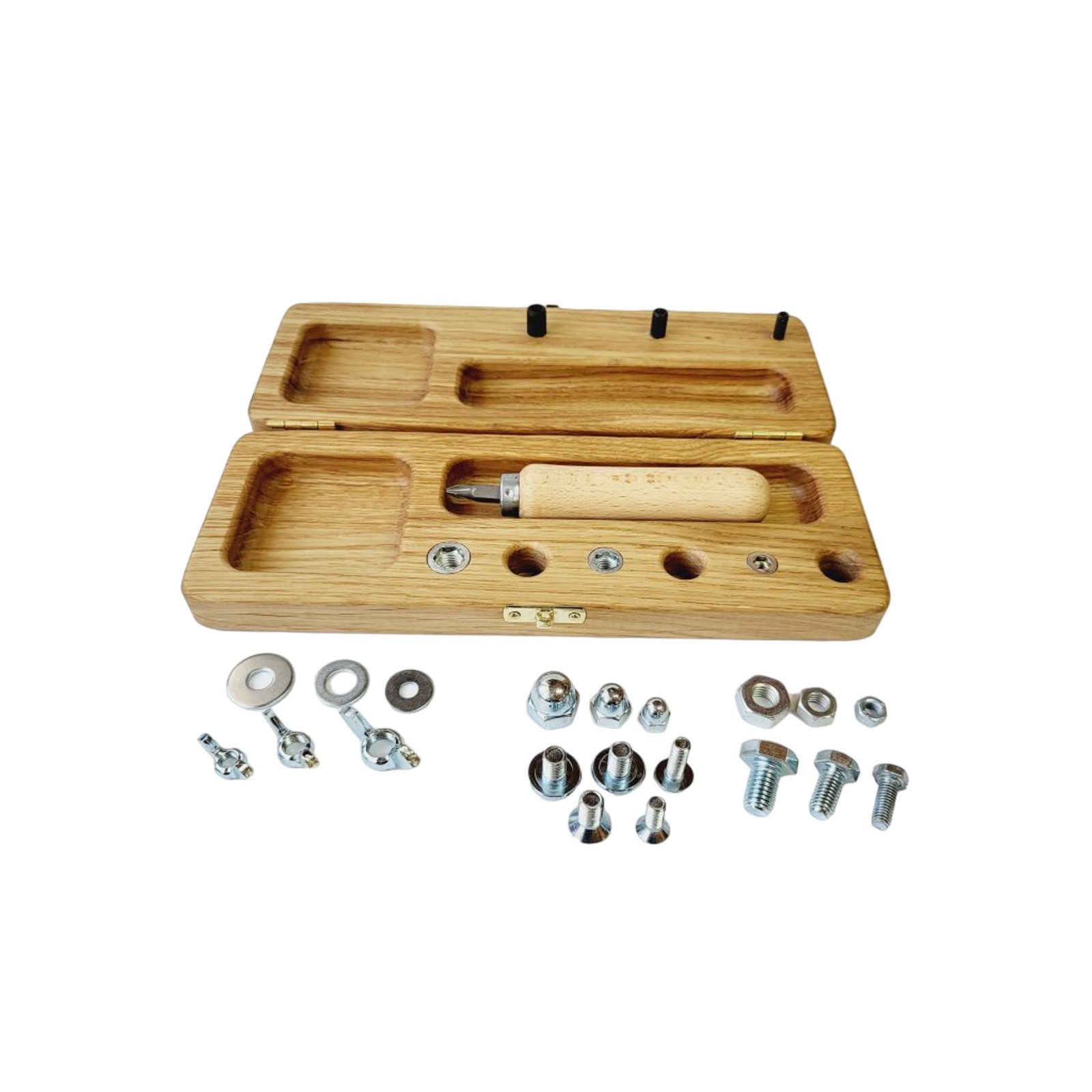 Montessori šroubovací set je vhodný pro děti 3-8 let. Tento set dětem ukáže praktické životní dovednosti při používání šroubováku.