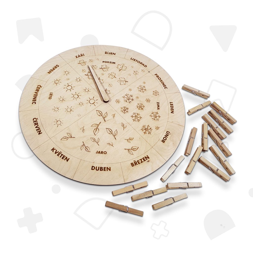 Objevte interaktivní dřevěné kolo s měsíci a ročními obdobími, které hravým způsobem pomáhá dětem pochopit plynutí času a sledovat důležité události v průběhu roku. 🌟