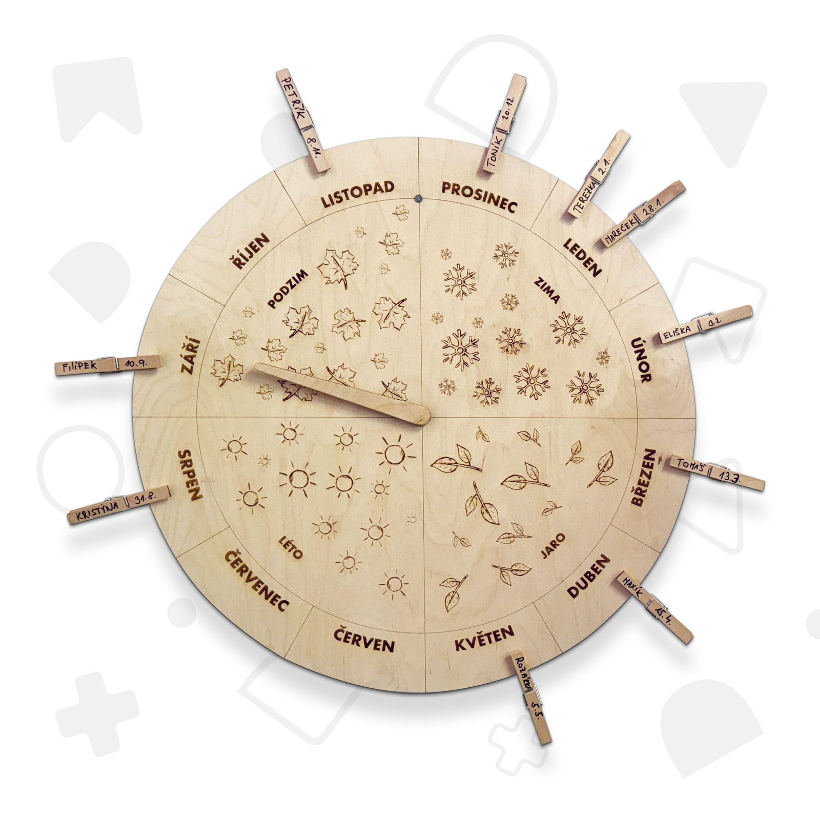 Jedinečnost produktu spočívá v možnosti připevnit na kolo kolíčky s daty narozenin, čímž vytvoříte přehledný kalendář narozenin přímo ve třídě nebo doma. 🎈
