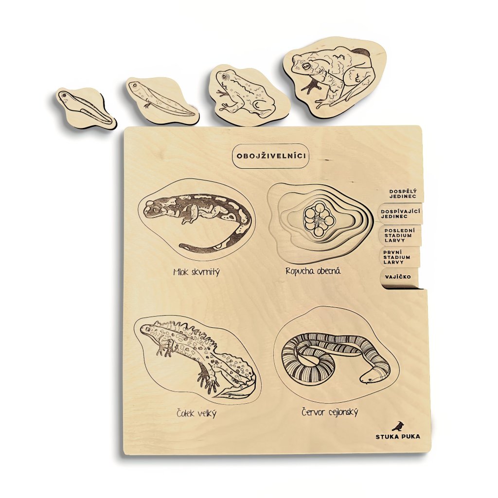 EDUKATIVNÍ DŘEVĚNÉ PUZZLE - ŽIVOTNÍ CYKLUS OBOJŽIVELNÍKŮ