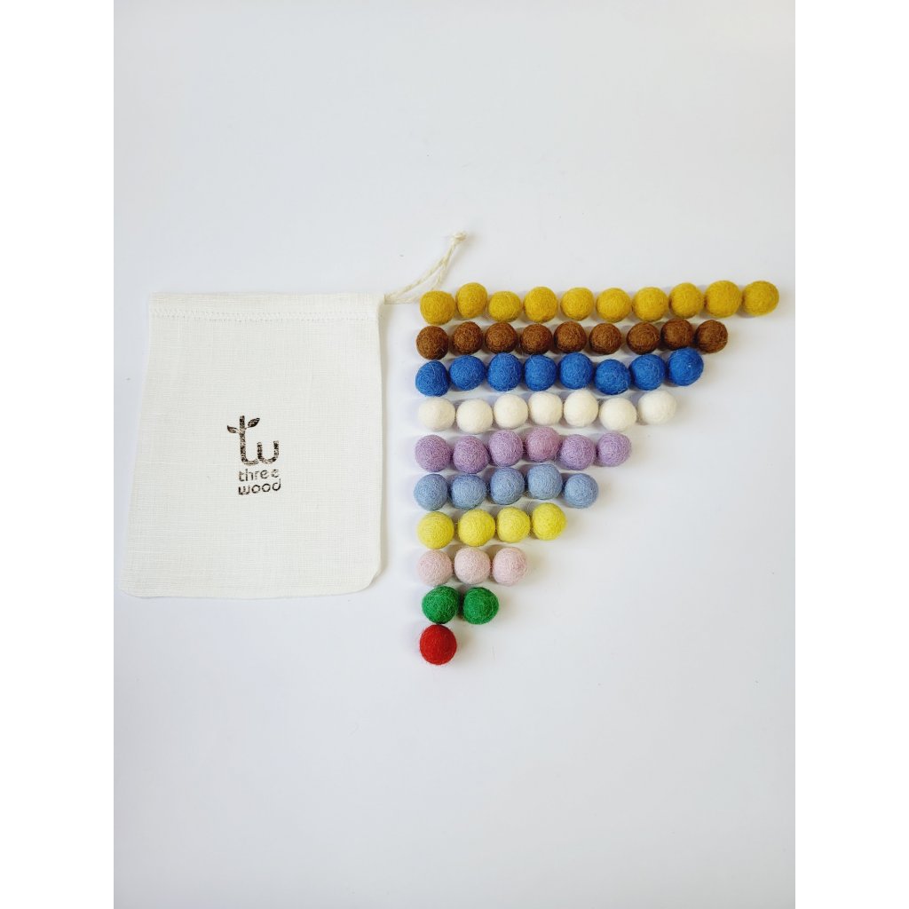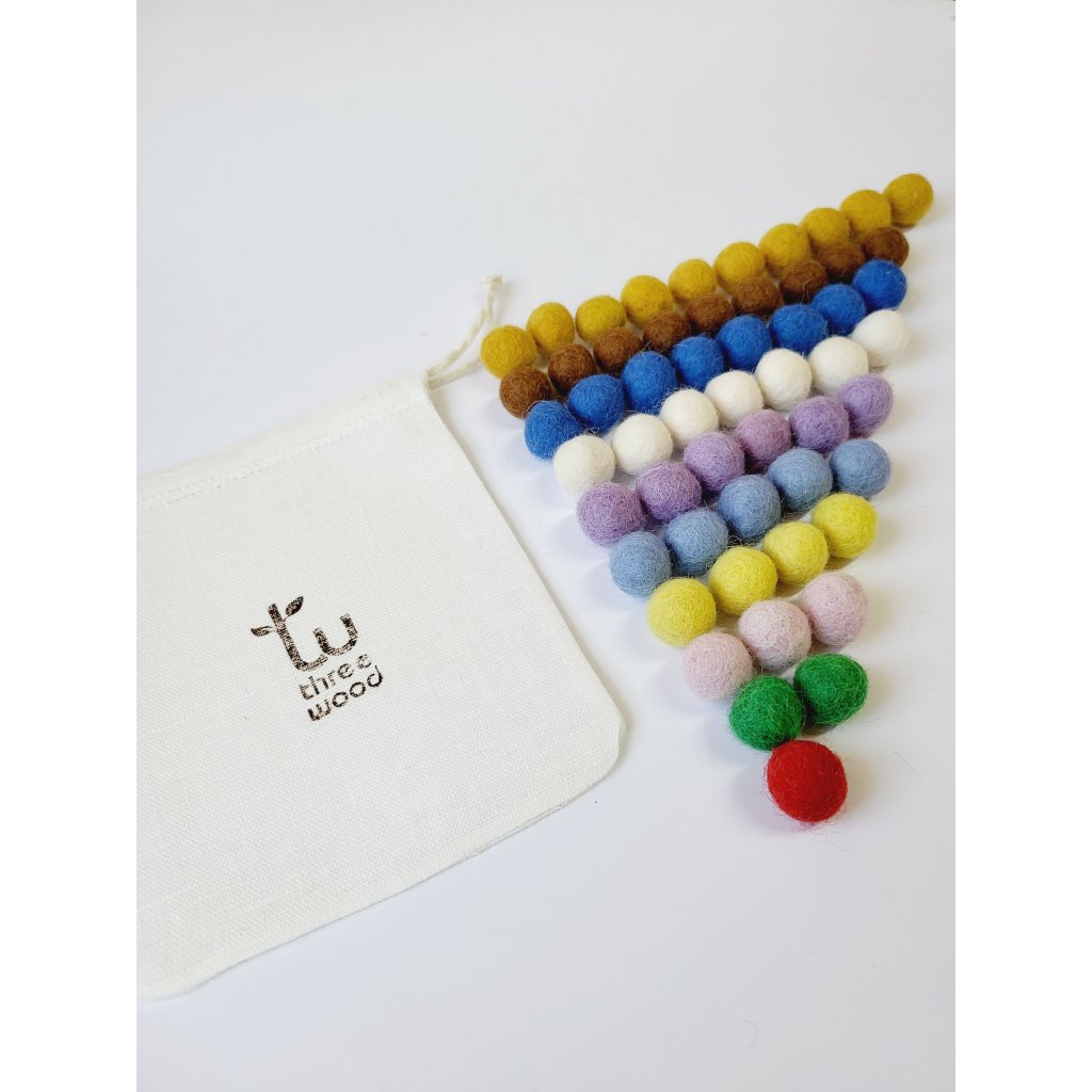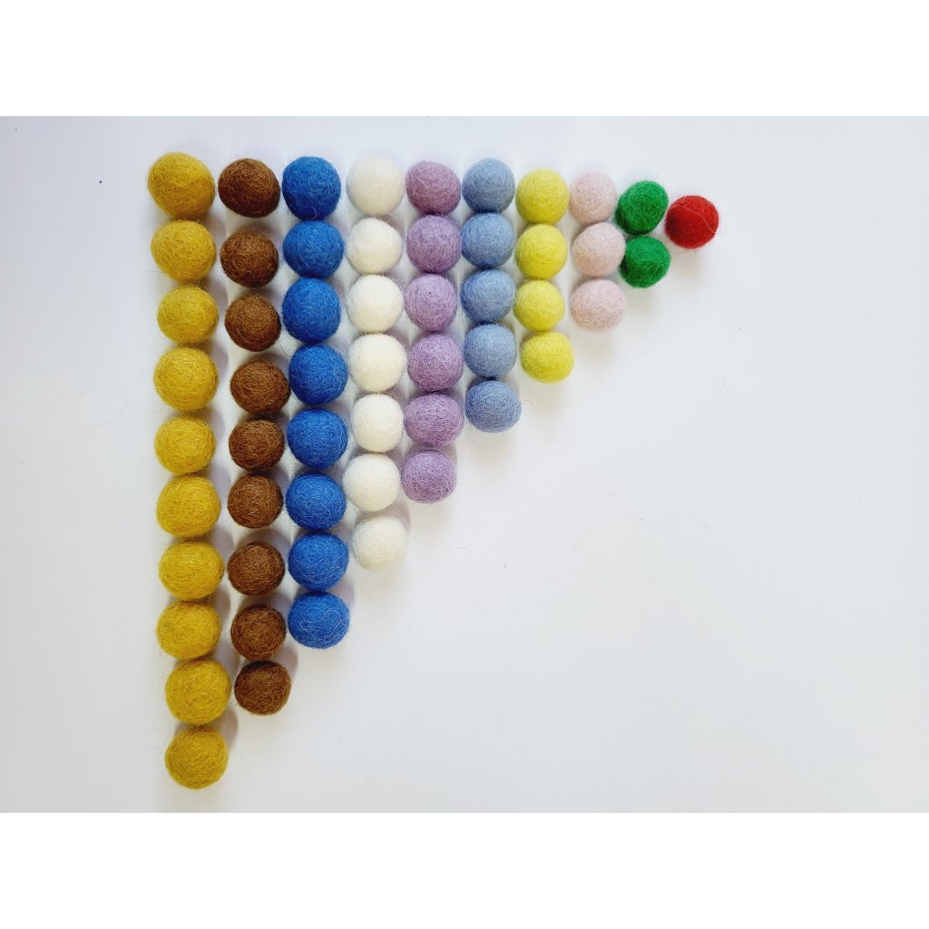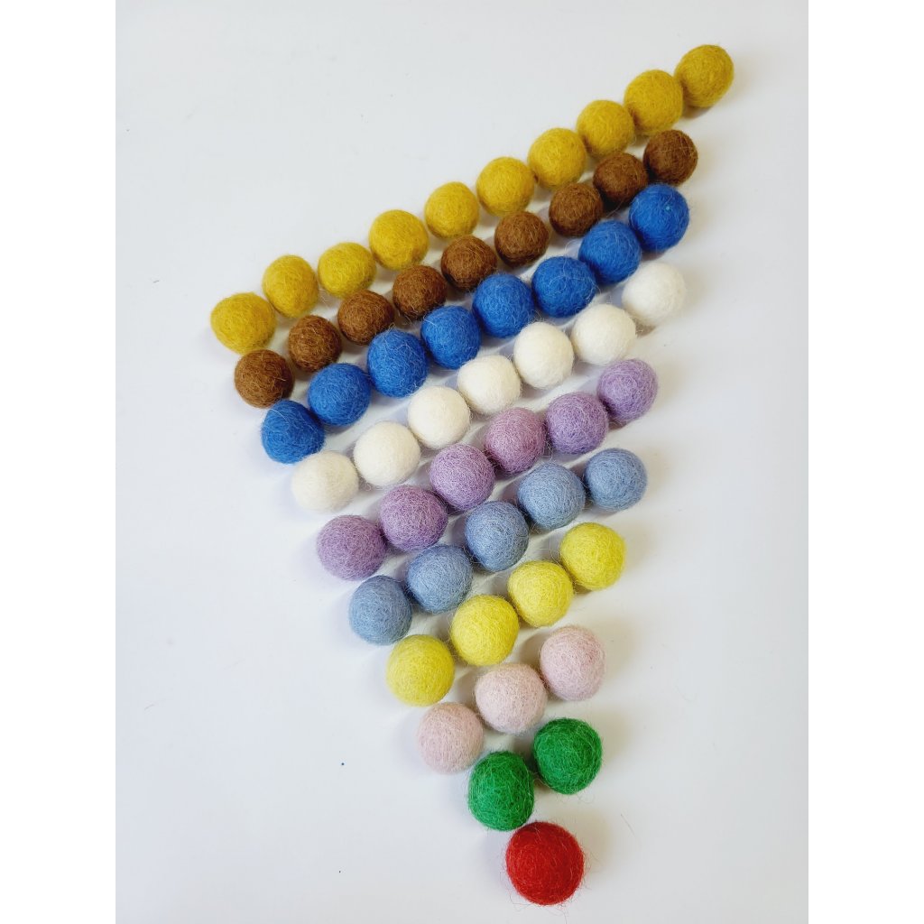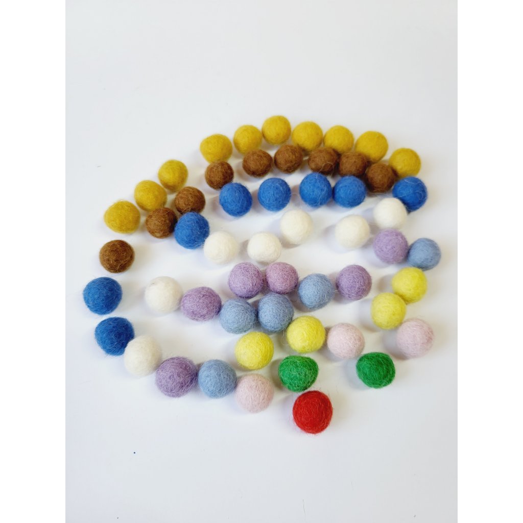 - 55 barevných ručně vyráběných plstěných kuliček
