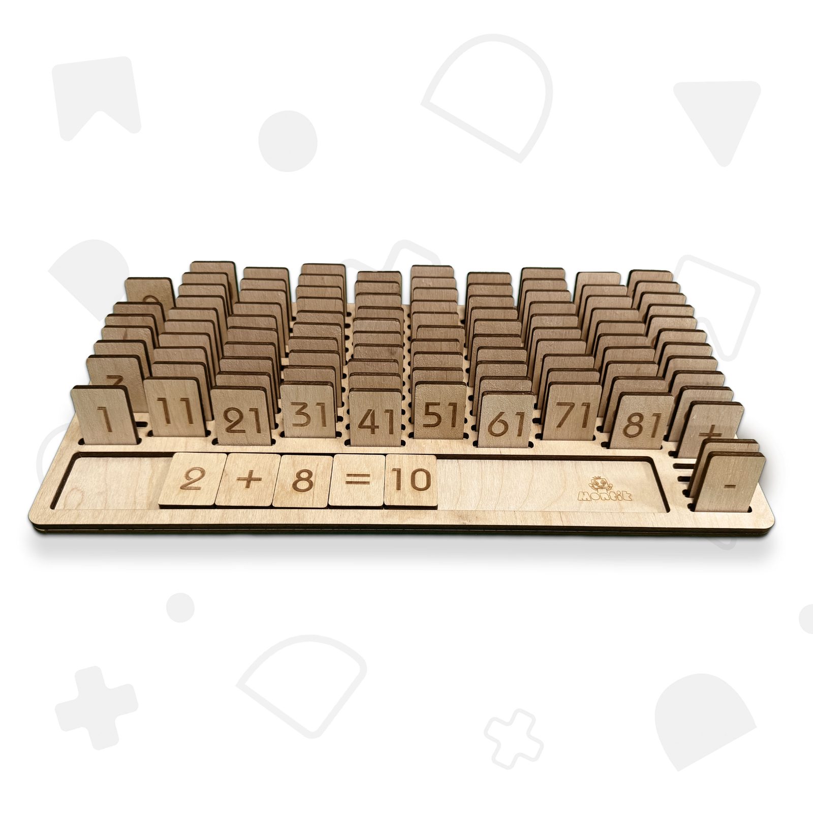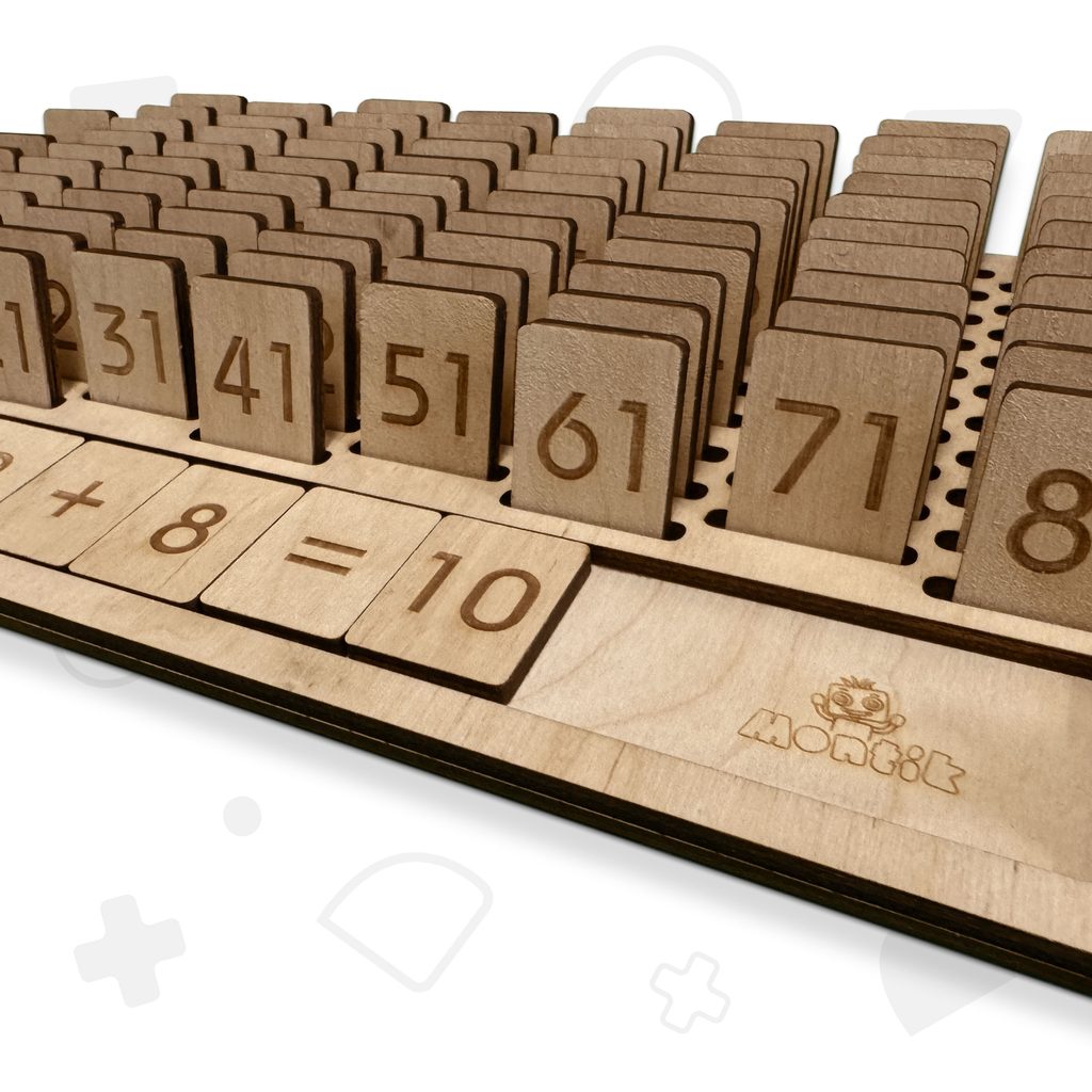 Sada dřevěných kartiček s čísly od 1 do 100 přináší dětem zábavné matematické aktivity. Pomáhá při učení sčítání, odčítání, násobení a dělení čísel.