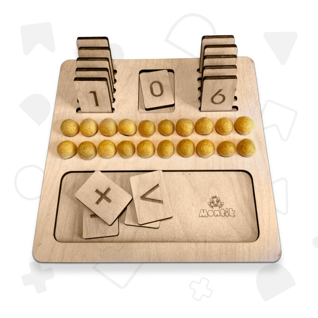 Dřevěná edukativní pomůcka pro děti - matematická pomůcka pro výuku počítání, sčítání a odčítání čísel do 20.