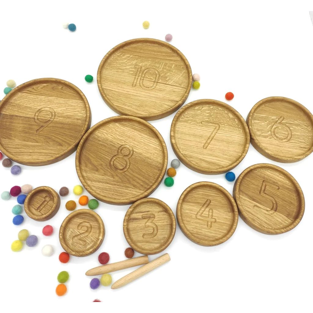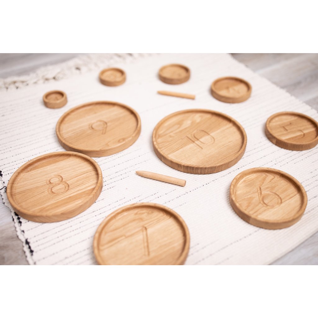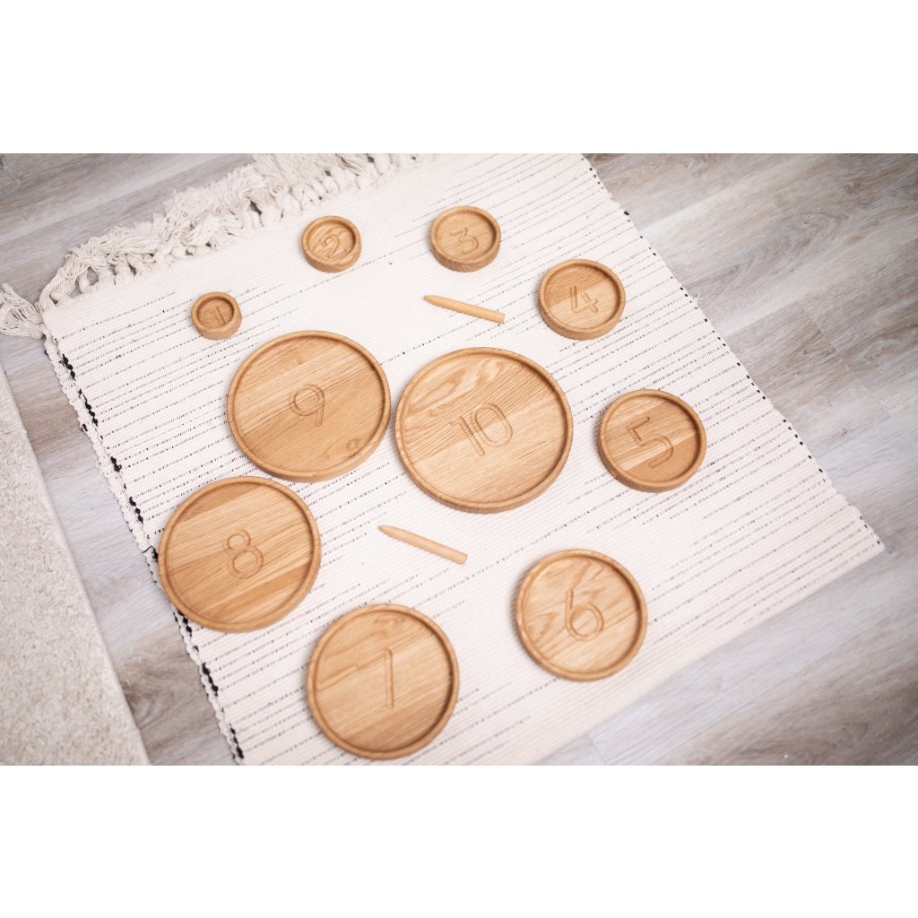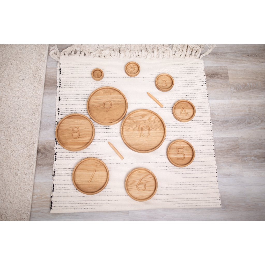 - 10 dřevěných dubových kulatých podnosů se symboly 1 - 10