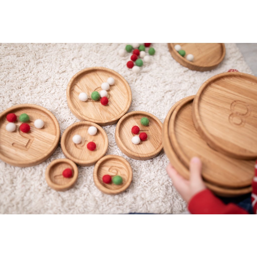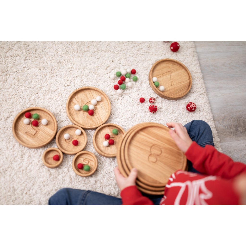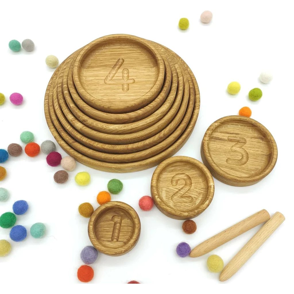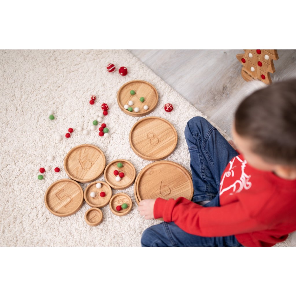- 10 dřevěných dubových kulatých podnosů se symboly 1 - 10