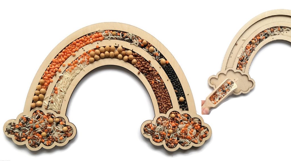 Senzorické montessori sypání Duha - jemná motorika