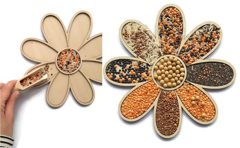 Senzorické Montessori sypání Květina - jemná motorika