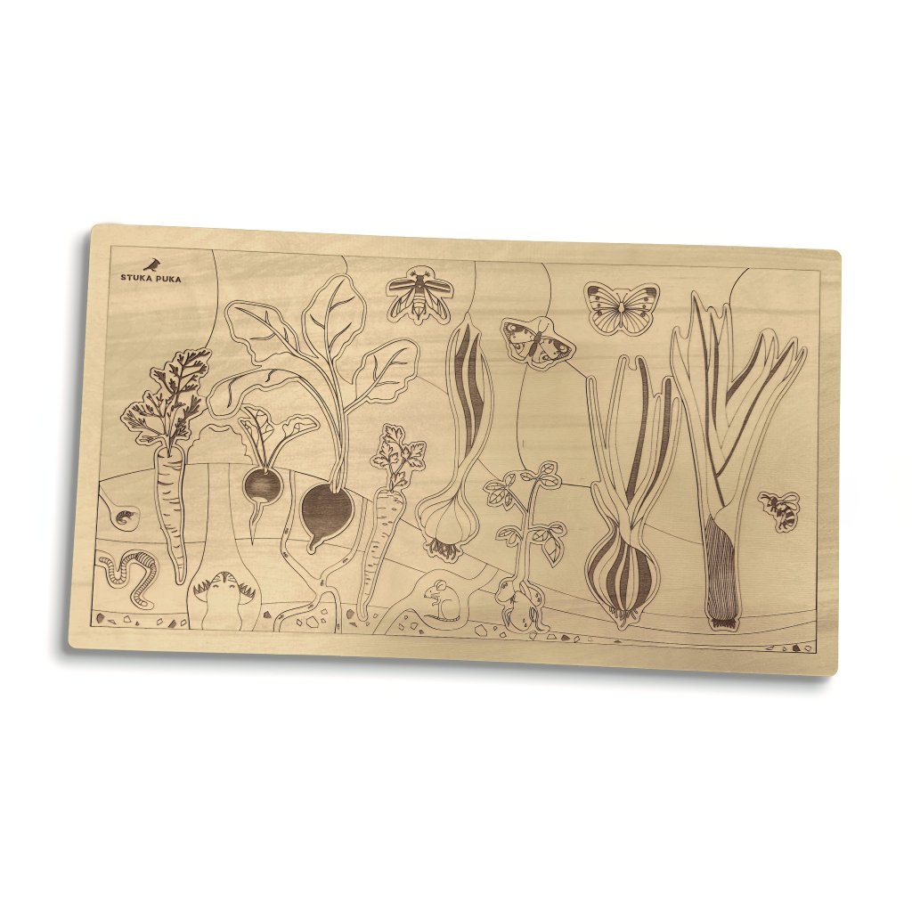 Kořenová zelenina - edukativní dřevěné puzzle - SLOVENSKÁ VERZE