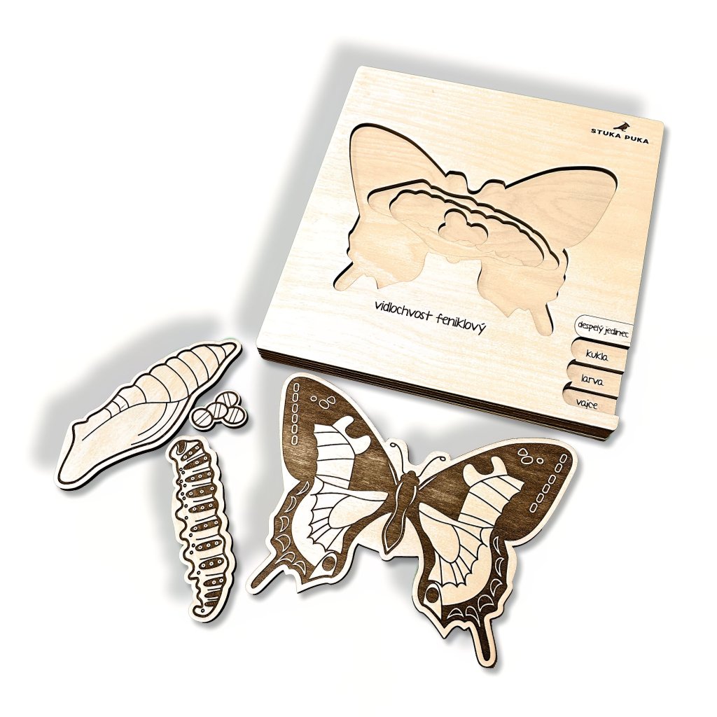 🦋 Dřevěné puzzle – Životní cyklus motýla