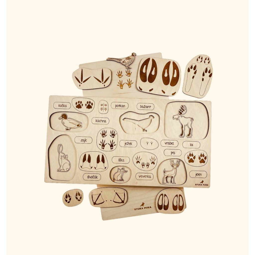 EDUKATIVNÍ DŘEVĚNÉ PUZZLE - STOPY ZVÍŘAT