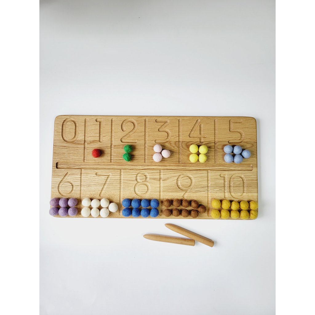 - dřevěná tabulka - podklad pro znázornění množství 1-10