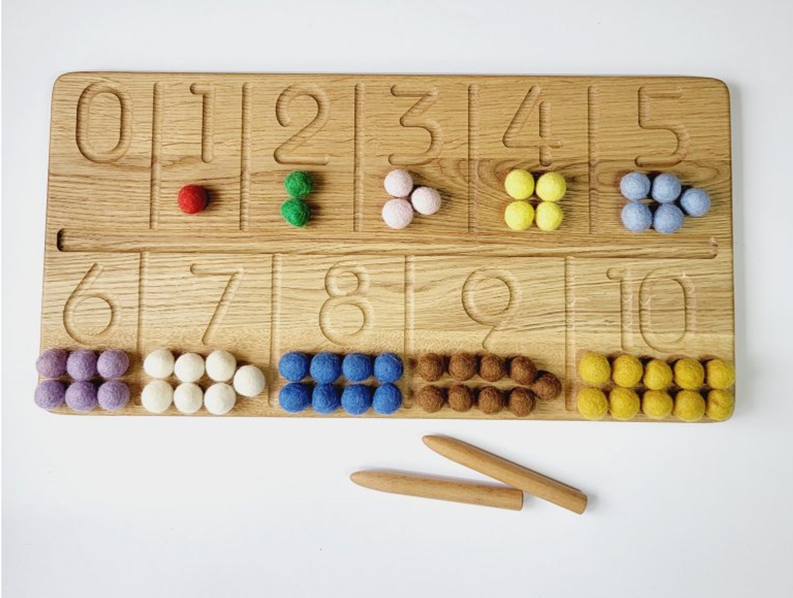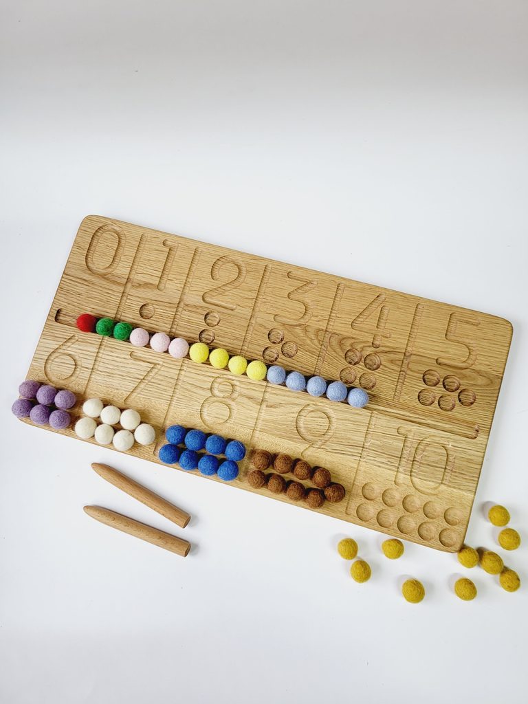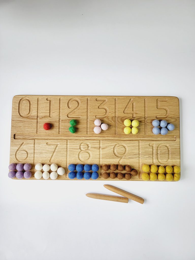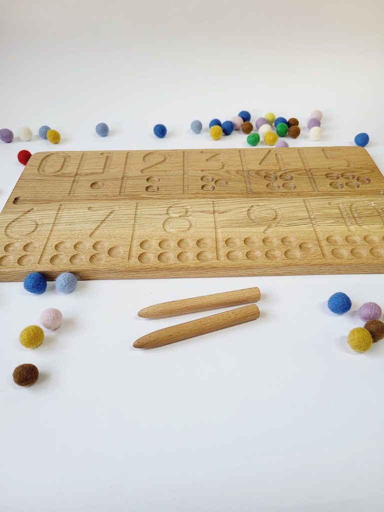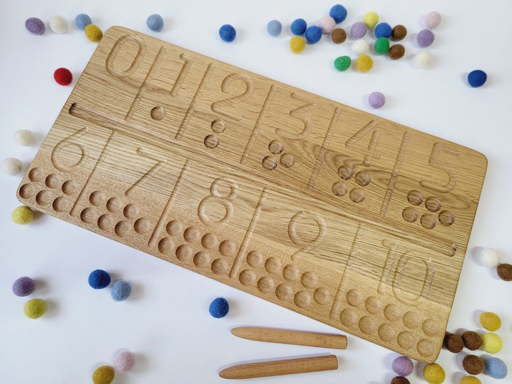 dřevěná tabulka - podklad pro znázornění množství 1-10