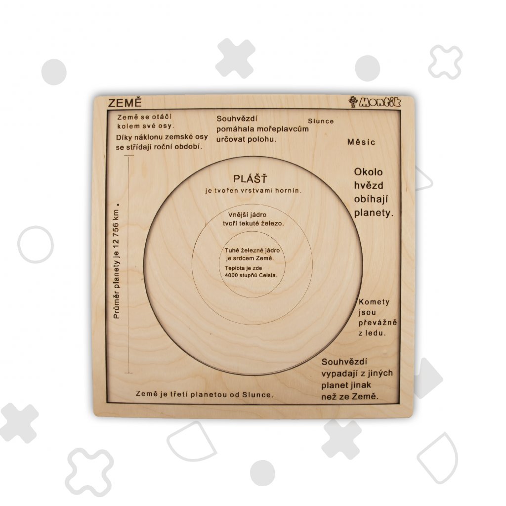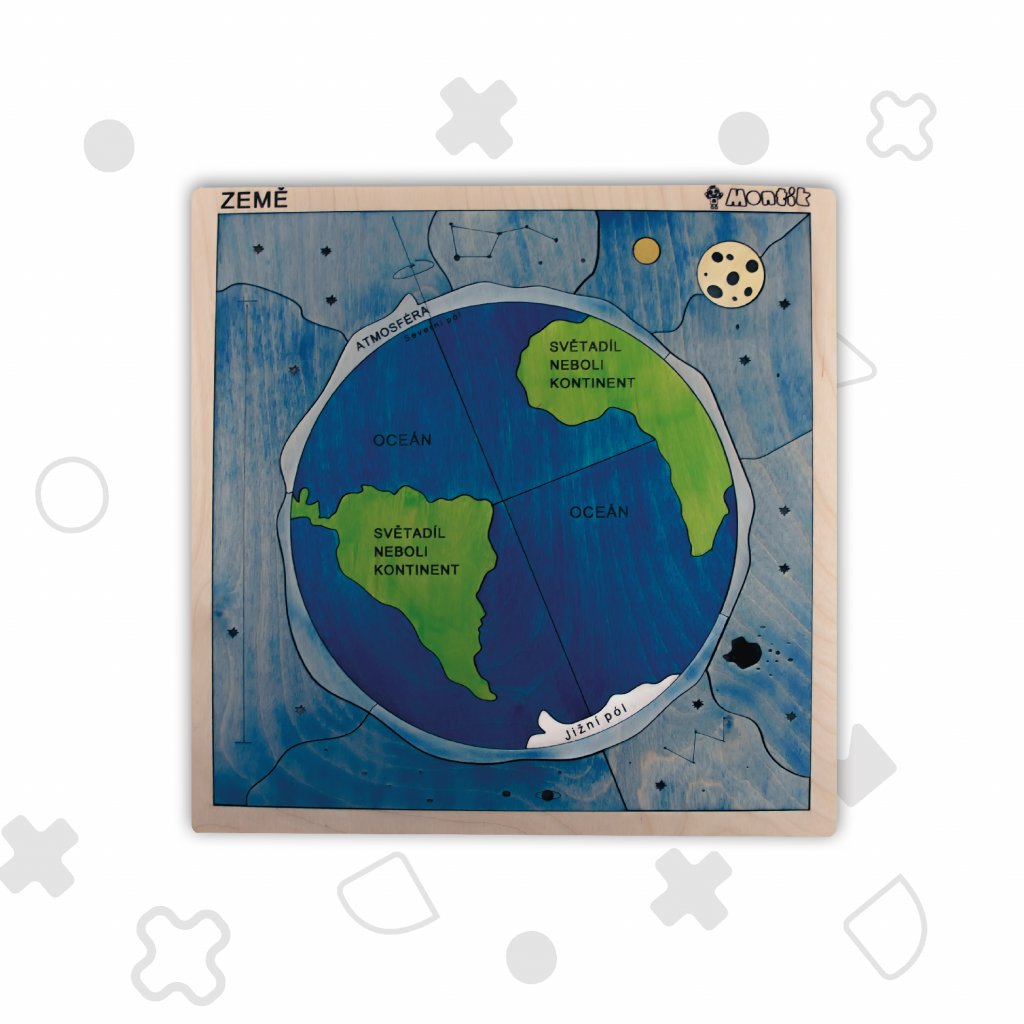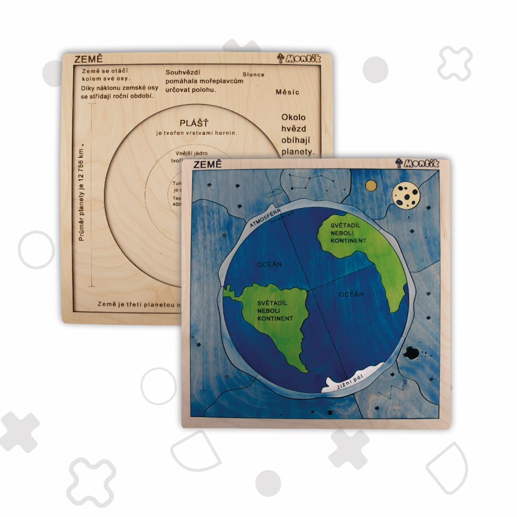 Trojvrstvé výukové puzzle. Celá planeta je ručně barvena.